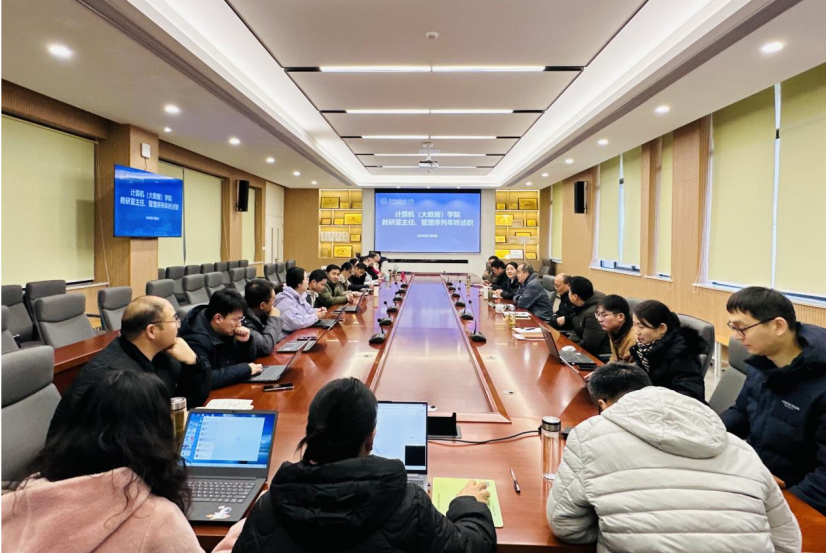 为全面总结学院2025年度各项工作,进一步加强学院队伍建设,提升学院治理效能,计算机(大数据)学院于2026年1月4日下午在博思楼(A3)W301教室成功召开了2025年度工作总结暨中层干部述职大会。学院党政班子成员及全体教职工参会,学校副校长李震到会指导,会议由副院长(主持工作)戴平主持。 (图为会议现场)会议首先进行了中层干部述职环节。学院分管领导潘经健、夏林、吴锦华、朱洪军依次上台,围绕各自分管领域的年度工作,从履职情况、工作成效、存在问题及改进思路等方面进行了全面、客观的汇报。述职过程严谨务实,既展示了成绩与亮点,也坦诚分析了不足,体现了学院管理干部的责任担当与反思精神。(图为中层述职现场)随后,戴平代表学院作2025年度工作总结报告,系统梳理了2025年学院在党建思政、人才培养、学生管理、科学研究、师资队伍、社会服务、学科建设等方面取得的主要成绩和进展,深刻分析了当前学院发展面临的机遇与挑战,并对2026年的重点工作进行了初步规划和部署,为学院新一年的发展指明了方向。 (图为戴